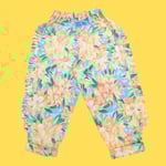 Reworked from pre-loved fabrics these super cute trousers have a fun frill detail on the outer leg.